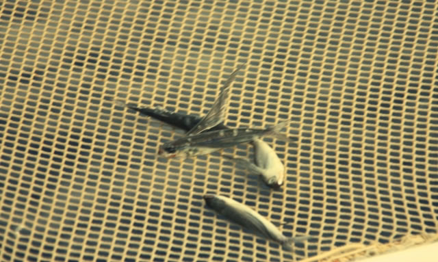 jeden Morgen hochgesprungene Fische an Bord